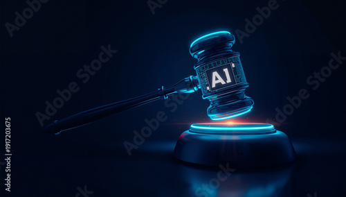 低い視点で迫るAI刻印の木槌が発光台へ落ちる瞬間を強調