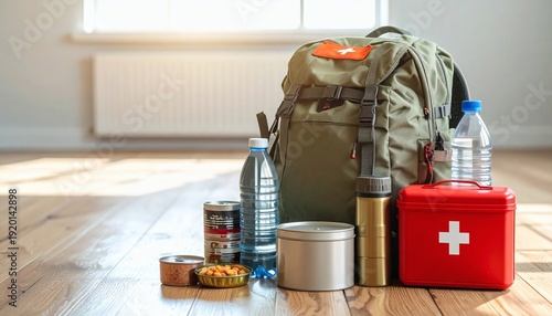 Emergency survival kit with backpack and food