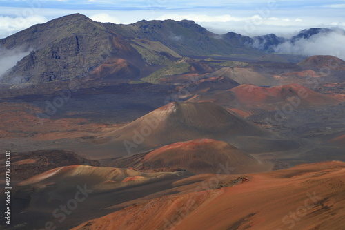 Cinder cones of prior eruptions can be seen in the crater of the Haleakala volcano in Maui, Hawaii