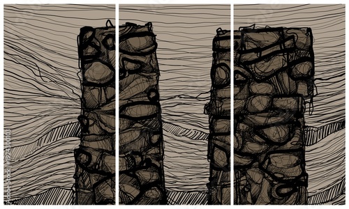Modern interior triptych. The picture is painted by hand on a tablet.