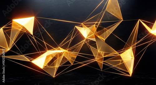 発光する金色の幾何学ネットワーク、ポリゴンと光の抽象的な高級背景素材