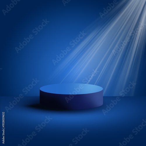 Okrągła niebieska platforma do prezentacji produktów.
