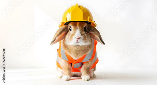 Labor day tribute adorable bunny in hard hat and safety vest