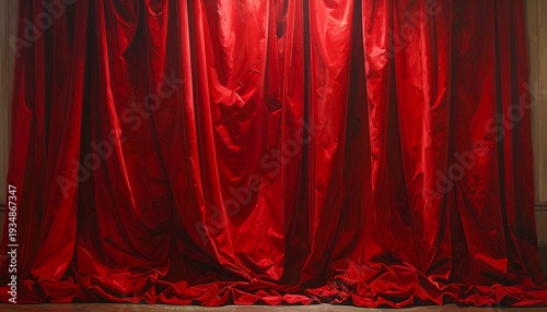 Bogata, aksamitna, czerwona kurtyna teatralna z ciężkimi fałdami, gotowa na otwarcie spektaklu.