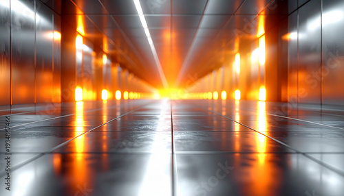 低アングルのオレンジ発光廊下(被写界深度ぼかし)