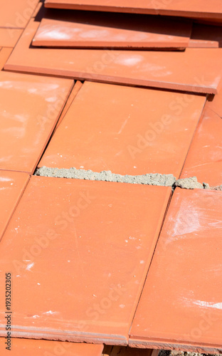 Terracotta tile raw industrial material close up