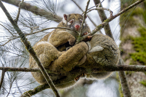 Green Ringtail Possum - Pseudochirops archeri, beautiful ringtail possum found only in the tropical forests and woodlands of the northern Australia, Queensland.