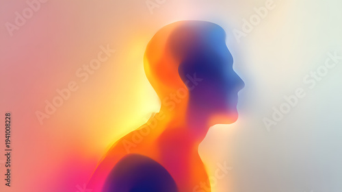 Abstract Silhouette of Human: An abstract, artistic depiction of a human silhouette, with colors of emotion, radiating energy and representing inner thoughts.