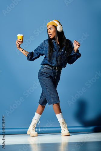 Vibrant spring fashion shines through with bold eye makeup and a playful beanie