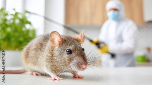#761899056Curious rat in veterinary clinic with caucasian male veterinarian in background