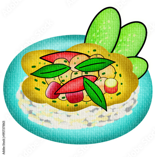 Rice with omelet and various toppings