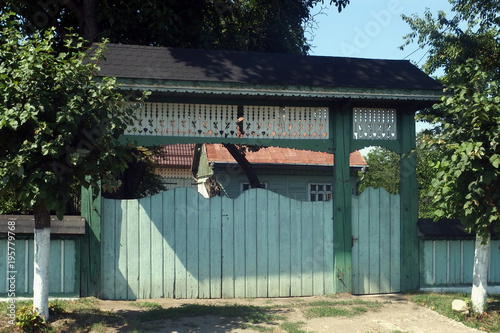 Rumunia, Bukowina - ozdobne tradycyjne drewniane bramy