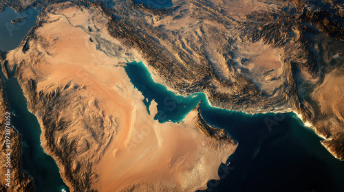 Aerial satellite view of the Strait of Hormuz, Middle East oil trade chokepoint
