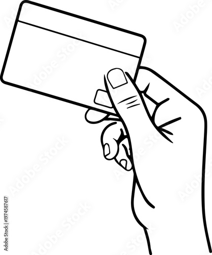 Hand Drawn Hand Holding Credit Card Black and White Illustration in Minimal Line Art Style Design