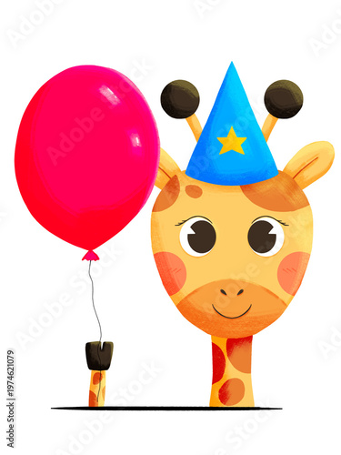 Illustration of a giraffe with red balloon