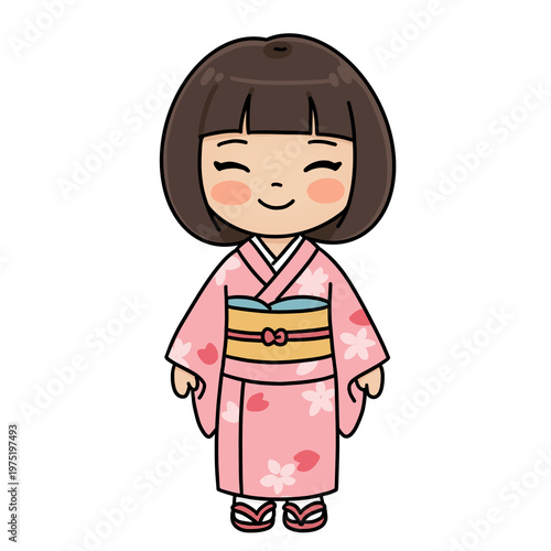 Little girl wearing traditional pink japanese kimono