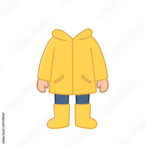 Yellow kids raincoat and boots clothing set illustration
