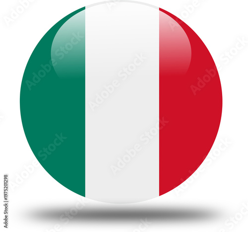 Glossy 3D round button icons of the national flags of Italy, featuring a vector glass reflection on a European country badge symbol