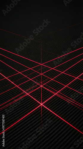 Red laser beams crossing over dark carbon fiber texture, creating a futuristic technology grid, sleek and modern digital style