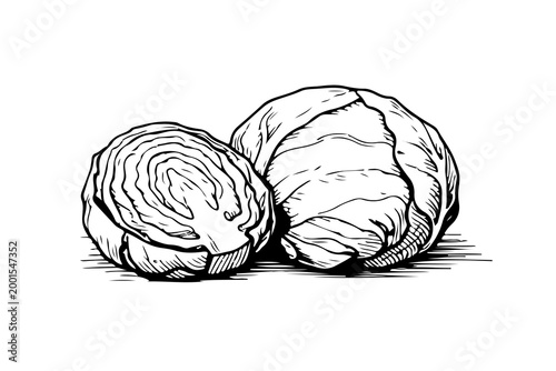 Simple hand drawn cabbage sketch, engraved vegetable food illustration.