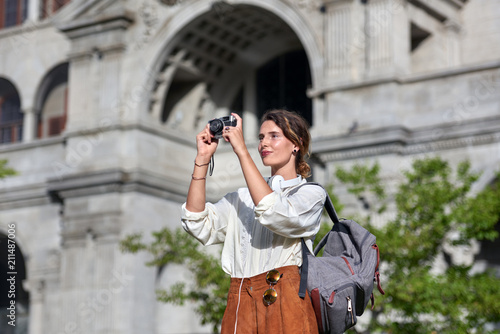 solo travel woman making memories on holiday european architecture