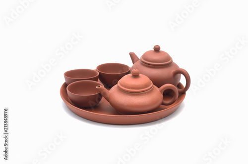 Closeup of Tea set on a white background
