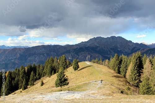 Presolana, monte Pora, Orobie alps. View of Presolana mountains from monte Pora with the first artificial snow of the winter season.