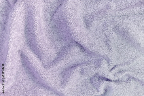 The texture of a crumpled terry towel. Blank light lilac background.
