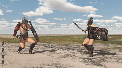 Thrakische Gladiatoren kämpfen in einer Landschaft