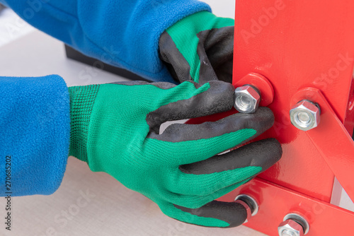 El trabajador aprieta tornillos con las manos
