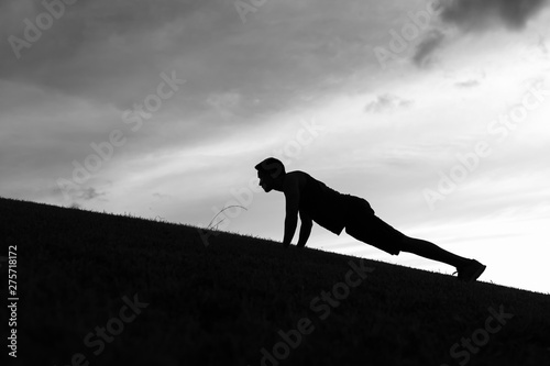 Man doing pushup exercise outdoors