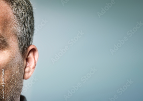 human ear detail from sideview attention concept