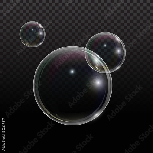 Soap bubble with rainbow reflection on transparent background. Transparent foam bubble, great design for any purposes.