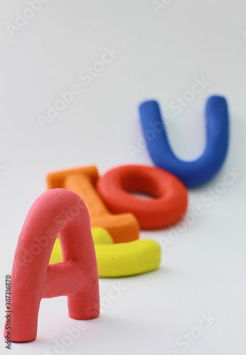 vowels a e i o u background white