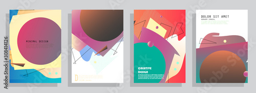 Covers templates set with graphic geometric elements. Applicable for brochures, posters, covers and banners. Vector illustrations.