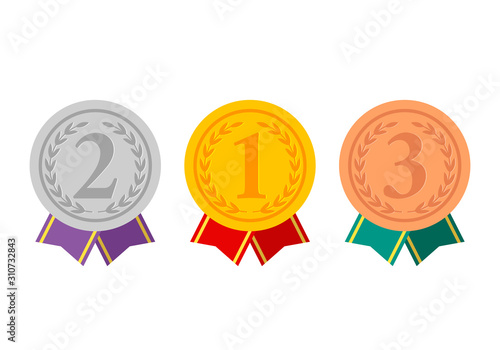 Gold, silver and bronze medals of champions winners. icon in the flat.