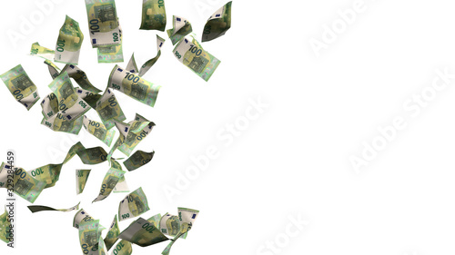 100 Euro banknotes white background.