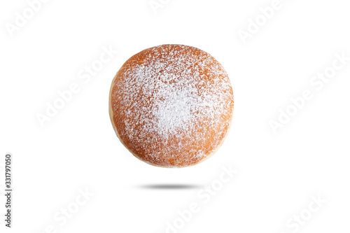 fresh donut sprinkled with powdered sugar. isolate on white background