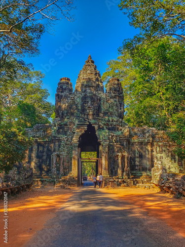 Siem Reap, Cambodia, December 29, 2019: Angkor Wat temple door