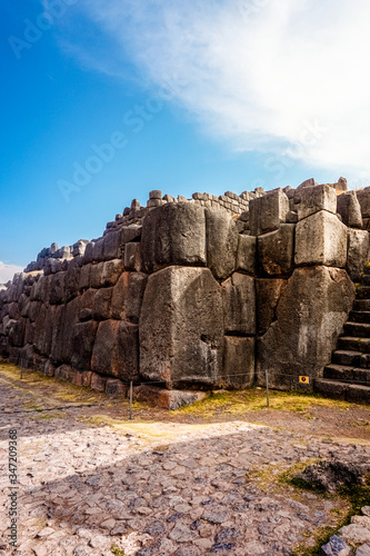 Inca fortress of Sacsayhuaman, stone wall. Cusco, Peru.