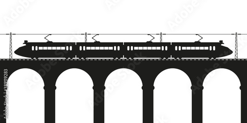 Suburban electric train on the viaduct