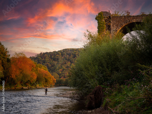 Monmouth Viaduct an old derelict railway viaduct bridge crossing the river Wye in Monmouthshire Wales.