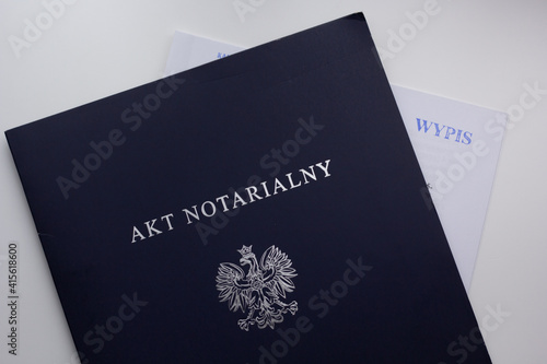 Closeup of a copy of notary act in Polish (akt notarialny).