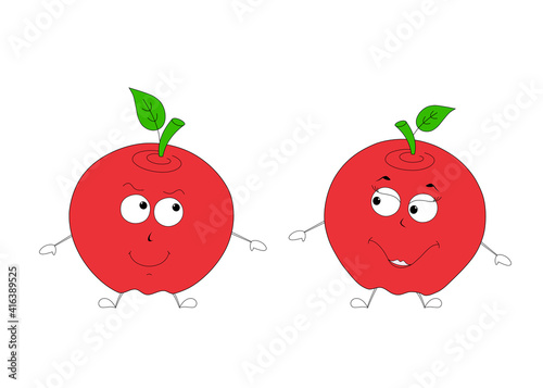 cartoon characters flirting with each other, a couple of cute red apples. digital illustration isolated on white