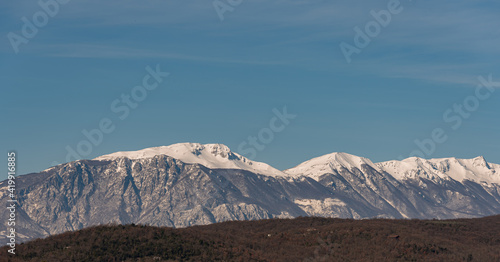 Mountainous massif of the Molise Mainarde. Winter panorama