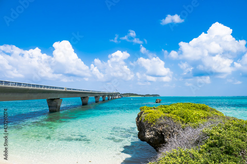 沖縄 宮古諸島 池間島と結ぶ池間大橋 絶景の海