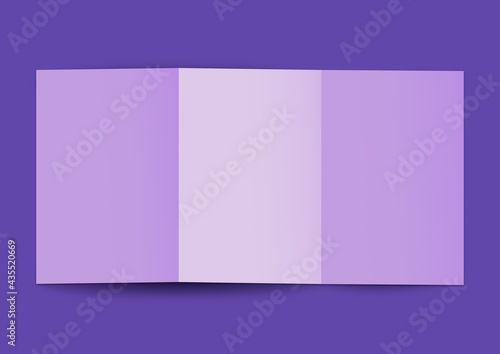 Pusta broszura. Ulotka składana akordeonowa. Mock up w jasnym fioletowym kolorze na ciemniejszym tle.