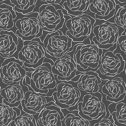 Seamless patterns. White outline of roses on a gray background.