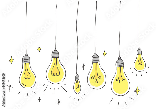 ぶら下がっている電球の手描きイラストセット(カラー)