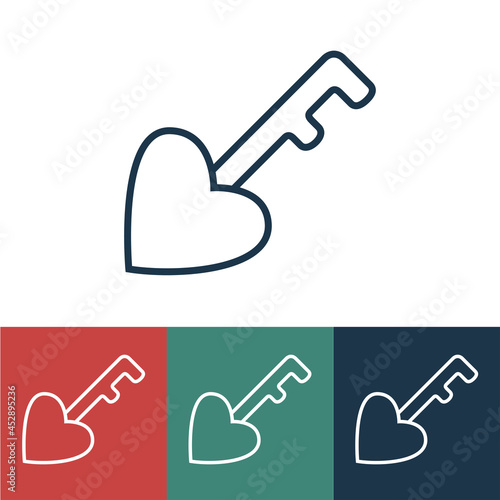 Vector linear icon with key from heart